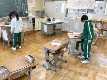 3.4年生も、国語の時間に言葉の学習をしていました。「ことばのきまり」という学習ノートを使い復習しました。先生からの説明だけでなく、上級生が下級生にヒントを出したりして教えている姿もありました。