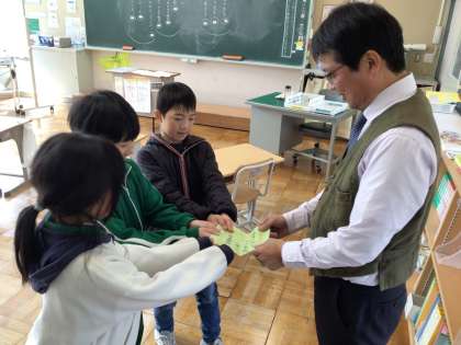 3.4年生は、一年間お世話になった先生に、お礼の手紙を渡していました。感謝の気持ちを一言添えて、校長先生に渡していました。