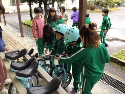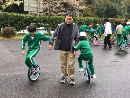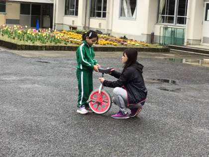 朝の活動で、一年間使う自分の一輪車を決めました。一輪車の高さの調節もしました。一輪車の調整が終わった後は、ロータリーで一輪車乗りを楽しんだり、上級生は、1年生に乗り方のアドバイスをしたりしました。運動会に向けて、休み時間の練習もさかんになってきそうです。最後に6年生が一輪車の片付け方を1年生に教えていました。