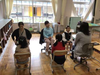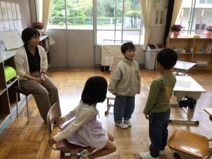 全校での対話集会に向けて、各学級で対話トレーニングをしています。今月は問答ゲームです。一問一答で答えます。好きな物を聞いたり、理由を聞いたりしていました。元気よくにこにこと対話を楽しんでいます。