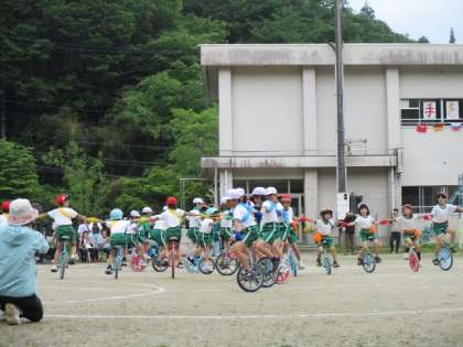 一輪車演技は全校が力を合わせ、大車輪は今までで一番長く回ることができました。