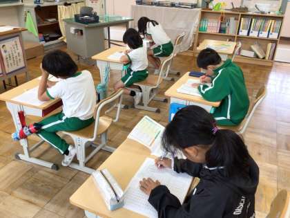 3.4年生は国語でローマ字の練習をしました。中学年の子たちにとっては、書き慣れないアルファベットですが、時間いっぱい丁寧な字で何度も練習していました。