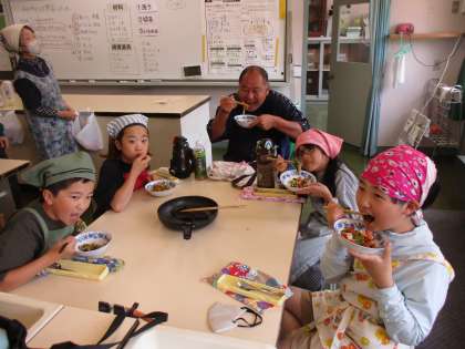 5・6年生は、家庭科の調理実習で、野菜炒めを作りました。お味はいかが?