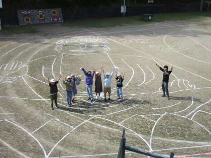 6時間目には、校庭に実物大の「大仏」を描きました。