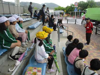 交通安全教室 1~4年 公開日 2025/06/04 更新日 2025/06/04 各学年から 3日(火)に、1〜4年生が豊田市交通安全学習センターに出かけました。あいにくの雨でしたが、室内でも道路の歩き方や自転車の乗り方を学習し、クイズや体験ゲームをしました。大型トラックの内輪差の実験を見て、交通事故の恐ろしさを実感しました。