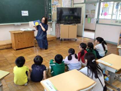 1.2年生は「かさもっておむかえ」「あめふり」のお話を読んでいただきました。梅雨入り間近なこの時期にぴったりなお話でしたが、軽快な歌が入っているお話で、心地よく聴くことができました。