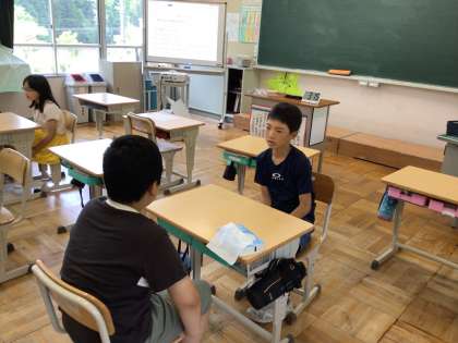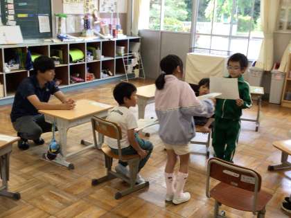 朝の学習の時間に対話トレーニングを行なっています。1.2年生は好きな食べ物を伝えその理由を話す練習をしました。話型の書いてある紙を見て練習していましたが、2年生は相手の顔を見て話すことも練習していました。3.4年生は好きなことについて、理由をナンバリングして話す話型の練習をしていました。3.4年生はたくさん理由も思い浮かぶようで、伝えたいことを整理して話していました。