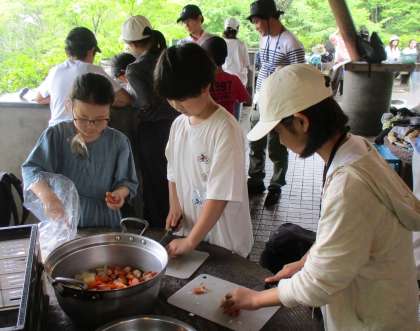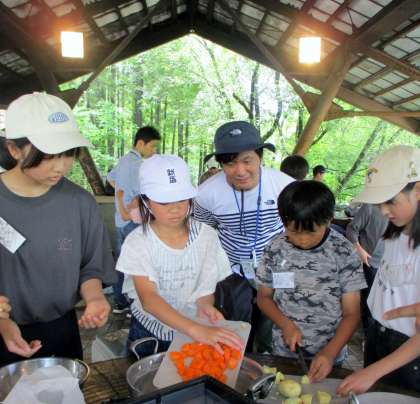 カレー作り、クラフト(木の枝ボールペン)、夜はキャンプファイヤー、明日はウォークラリー・・・。楽しい思い出をたくさん作ってきてくださいね。
