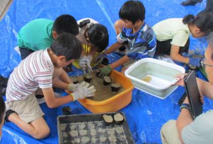 今日は、大豆をポットに植える作業をしました。実際にはもっとたくさん植え、1か月後に定植を行います。そのときにまたお手伝いをする予定でいます。最後に手作り味噌になるのが楽しみです。