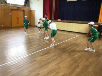 今日は残念ながら、水泳学習ができなかったので、体育館で体育をしました。
