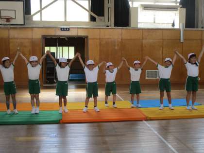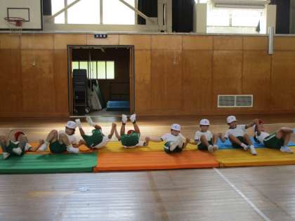 今日、火曜日は、体力向上補助指導員 橋本先生の来校日です。1・2年生が、体育の授業で、とても可愛いマット運動の技を披露してくれました。手をつなぎ、「せーの」の合図で一斉に前転。見事全員立ち上がりました。