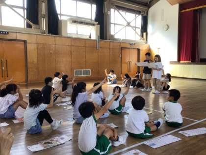 なかよし委員会が計画した「本となかよし一行詩集会」がありました。始めに一人一人が、自分の好きな本について一行詩にして紹介しました。次になかよし委員会の児童が、おすすめの本についてブックトークをし、全校にクイズを出題していました。とても楽しい集会でした。一人一人が作った一行詩は、紹介した本と一緒に図書室に掲示してあります。