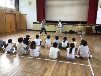 棒の手活動ー3.4.5.6年生ー 公開日 2025/09/17 更新日 2025/09/17 特色ある学校づくり推進事業 今週から、地域の文化に親しむことを目的に3.4年生、5.6年生で棒の手の学習が始まりました。始めに昨年度の5.6年生が新盛学習で「棒の手を継承したい」という思いをもっていたことを紹介しました。次に、地域の方が棒の手の演技を披露してくださいました。最後に棒の持ち方をおしえていただいたり、拍子木に合わせて動いてみたりしました。 1年 2年 3年 4年 5年 6年 PTA 特色ある学校づくり
