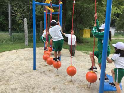 新しい遊具が使えます 公開日 2025/09/30 更新日 2025/09/30 特別活動 今日から、運動場に設置された新しい遊具が使えるようになりました。使い始める前の休み時間に、遊具の使い方の決まりについて、全校で確認しました。昼休みには、多くの子が外に出て、新しい遊具で楽しそうに遊ぶ姿が見られました。