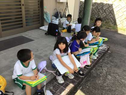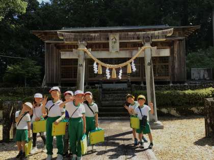 学習の様子からー1.2年生ー 公開日 2025/10/08 更新日 2025/10/08 各学年から 1.2年生は、生活科の学習で、学区探検に行きました。今日は、久木地区に行きました。久木地区に住んでいる子たちが自分の家の周りを案内してくれました。途中、久木館で休憩をしました。久木館の中を見せていただいたり、探検マップに見つけたものを書き込んだりしました。また、地域の方に、神社への道も教えていただき、お祭りをした神社へも行きました。たくさんの発見がありました。