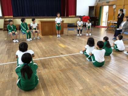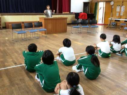 今日から後期が始まりました。学年の代表の児童が後期にがんばりたいことを話しました。「漢字をきれいに書きたい」「学芸会で気持ちのこもった演技をしたい」「笑顔ですごしたい」「高学年に向けて、上級生の動きをしっかりみておきたい」など前向きな目標を発表していました。校長先生からは、校訓の中の「たくましく」について、「失敗することでたくましくなるので、いろいろなことに挑戦しよう」というお話がありました。後期に向けての気持ちが伝わるような校歌の歌声も体育館に響きわたりました。