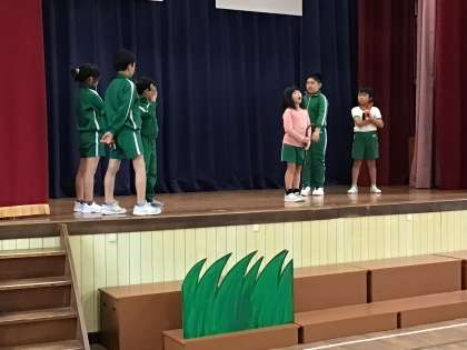 学芸会に向けて 公開日 2025/10/21 更新日 2025/10/21 各学年から 各学年、学芸会に向けての練習が本格的になってきました。低学年は、劇中に入るダンスの練習を元気いっぱいしています。中学年は、セリフや動きを確認しながら練習しています。高学年は、照明や、自分たちで着替えて登場するタイミングなども考えながら劇を作り上げています。