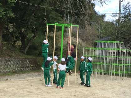 5.6年生は体育の学習で、遊具を使ったサーキットトレーニングをしました。高学年にとって登り棒はとても難しいようです。体育で少しずつ練習していきます。