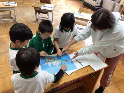 1年生は国語の学習で「いろいろな船」を読んでいます。今日は、「ぎょせん」について学びました。教科書を読んでわかったことをまとめたり、友だちと船の仕組みを確認しあったりしました。