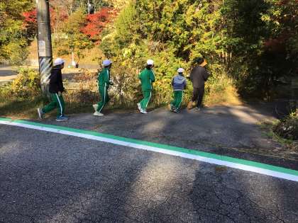 試走会のコースを確認しました 公開日 2025/11/17 更新日 2025/11/17 特別活動 試走会に向けて学年ごとに走るコースを確認しました。昨年度とコースが変わったため、プール横を通り過ぎ、どの学年も最後に坂道を登り、東門へ向けて下り坂を走って運動場にもどります。溝の場所を確認したり、坂道の走り方に気をつけたりしながらコースを実際に走っていました。
