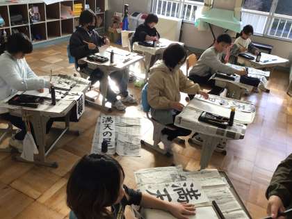 5.6年生は書写の時間に書き初めの学習をしました。書写ボランティアの先生に教えていただいたことを思い出しながら、一画一画丁寧に練習していました。お手本をじっくり見て練習していることもあり、字の形も整ってきています。