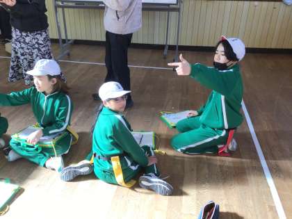 5.6年生は、体育の時間に体づくりの運動として「パルクール鬼ごっこ」をしました。障害物をうまく使い逃げたり、追いかけたりして、逃げる子のしっぽを取る鬼ごっこです。決められた時間内に逃げられてしまう子のしっぽをどうしたら取れるのかについてグループの友達のアドバイスを聞きました。