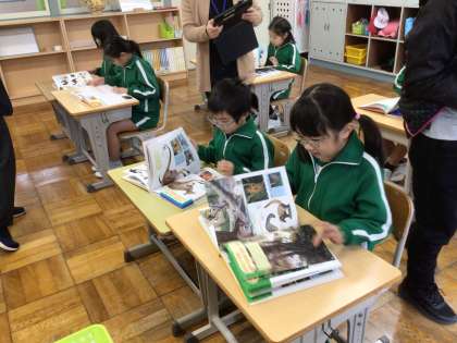 学習の様子から−1.2年生ー 公開日 2026/01/13 更新日 2026/01/13 各学年から 1.2年生は市立図書館の先生から、本でどのようにして調べ物をするのかを教えていただきました。動物の図鑑を使って、目次や索引を使い分けながら、先生が出題されたクイズを解きました。
