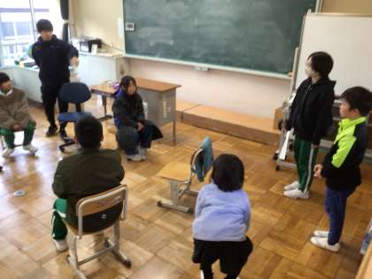 今朝の委員会活動では、今後の集会に向けて準備を進めました。なかよし委員会は、全校遊びの計画を元に、会の進行の仕方のリハーサルをしていました。すこやか委員会は、月末のすこやか集会に向けて、集会の流れを確認し、練習を始めました。