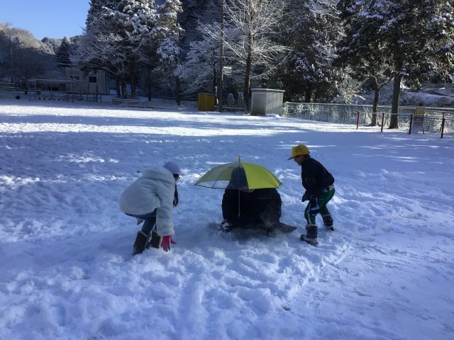 全校雪遊び 公開日 2026/01/30 更新日 2026/01/30 全校での活動 昨夜の雪で、校庭には雪がたくさん積もっていました。朝から全校児童が外へ出て、雪合戦や雪だるま、かまくら作りを楽しみました。先生方も雪合戦の標的になったり、全力でかまくら作りに取り組んだりして楽しんでいました。 +1