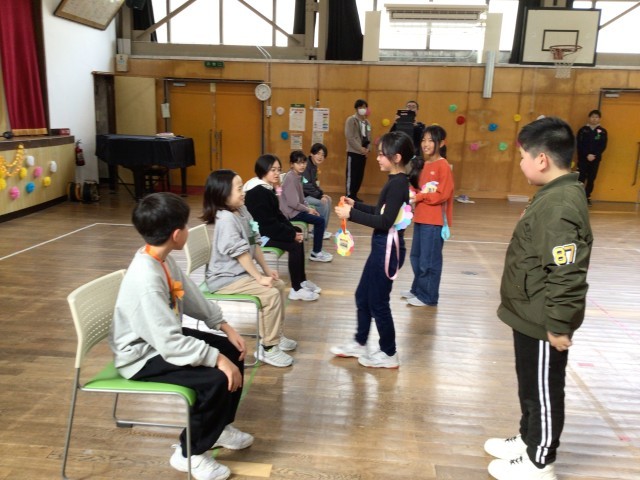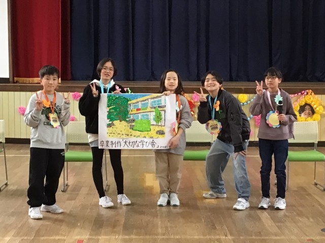 6年生を送る会 公開日 2026/03/09 更新日 2026/03/09 学校行事 3月6日に、6年生を送る会を行いました。くじ引きで決めた席で6年生と給食を食べ、校内ウォークラリーやじゃんけん列車、ドッジビーをして、思い出に残る楽しい時間を過ごすことができました。卒業生から素敵な「校舎のちぎり絵」をいただきました。新盛小学校での6年生との思い出がよみがえるようです。昇降口に掲示してあります。来校の折には、ぜひご覧ください。