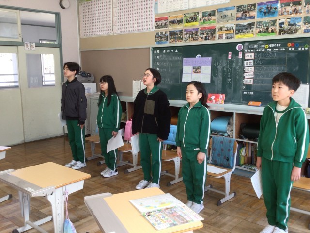 卒業式まであと7日。1年生から5年生と6年生にわかれて卒業式の言葉の練習をしています。1年生から5年生は体育館に響きわたる声で伝えることができます。話す言葉を覚えてしまい、紙を見ずに話す子もいました。6年生は、動画で自分たちの姿や言葉を伝える様子を見て、よくなってきていることと直した方が良いことを話し合いました。自分たちで課題を見つけ、変えていこうとする姿に卒業式に向かう気持ちの高まりを感じました。