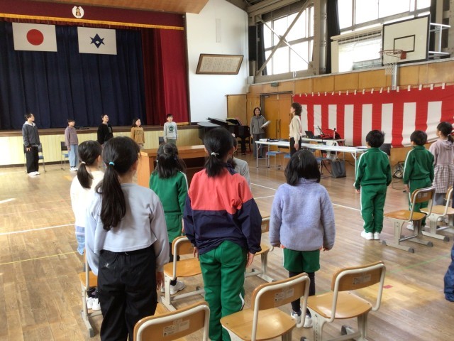 今日の卒業式練習は、全校で行いました。式の流れを大まかに知ることができました。今年一年間、小松先生に歌のご指導をいただいたおかげで、卒業式の歌もとても伸びやかに気持ちを込めて歌うことができるようになりました。