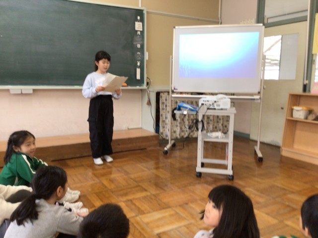 2年生が生活科の学習で「小さかったころの自分に会いに行こう」の学習をしてきました。今日は「自分ひろがれ発表会」をしました。小さい頃に好きだったこと、名前の由来、これからどんな自分になりたいかなど、調べたことや考えたことについて、Powerpointを使いながら話しました。