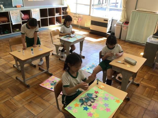 1年生は今年最後の道徳の学習がありました。6月に友達について考える学習をしましたが、、1年生はそれ以来ずっと継続して、友達に感謝したいことをカードに書いて掲示してきました。今日は、それを友達に読んで紹介しました。模造紙いっぱいに感謝の言葉のカードが貼られていたので、子どもたちも時間をかけてたくさんの「ありがとう」を伝えていました。2年生は、学級目標「やってみよう」について考えました。今年一年間で挑戦したことを星のカードに書き、画用紙に貼りました。全員が画用紙いっぱいにたくさんの星のカードを貼ることができました。