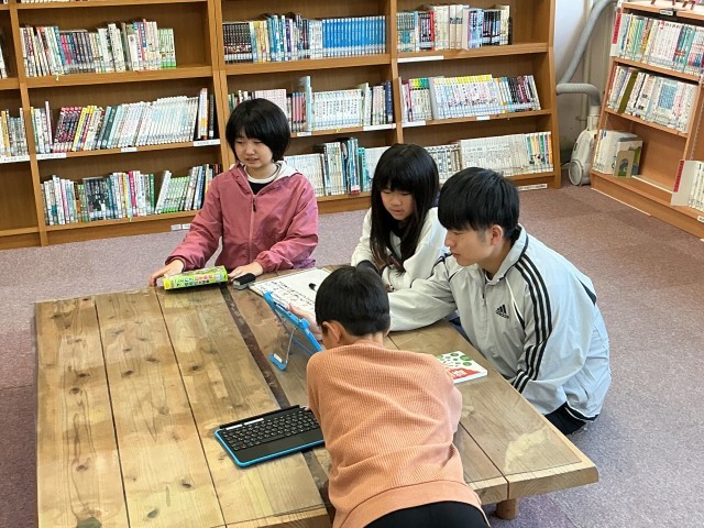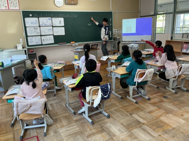3,4年生は社会の時間に「学校の周りの様子」の学習で、自分のおすすめ場所を紹介していました。みんなのおすすめ場所が、学校を起点にすると、どちらの方角にあるのかをみんなで考えました。5,6年生は学活の時間に、学級目標を考えました。「あきらめずに最後まで挑戦する」という自分たちの目標に近い四字熟語を、辞書や、タブレットのアプリを使って、探したり話し合ったりしていました。