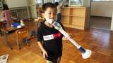 10月29日 1・2年図工 身の回りの物を使って、楽器を作っています。マイク、マ...