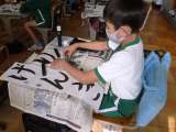 11月18日 5・6年書写 書き初めの練習をしています。5年生は「春の足音」、6...