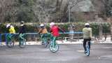 2月24日 1・2・5・6年体育 3月1日にある今年度最後の一輪車検定に向けて練...