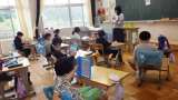 5月20日 1・2年音楽 歌いながら、曲に合わせてリズム打ちをしています。拍に乗...