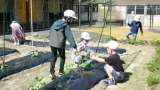 5月31日 1・2年野菜の水やり 1・2年生が畑に植えたミニトマト、ナス、ピーマ...