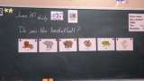 6月25日 1年算数 たし算やひき算の式になる問題を、教科書のイラストを見ながら...