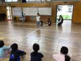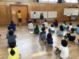 5、6年生が新盛学習で、足助の棒の手ー富岡起倒流ーについて保存会の方からお話をう...