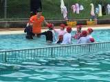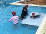 1年生は、浮き島の上でお腹をつけて、アザラシのように水の中を動いていました。2年...
