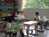 7月19日 5・6年家庭科 これから作る縫製作品の説明を聞いています。どれにしよ...