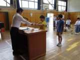 7月20日 夏休み前の全校集会 はじめに、学級暗誦の発表を中学年、低学年、高学年...