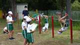 9月27日 3・4年体育 てつぼうの練習をしています。「ツバメ」や「コウモリ」な...