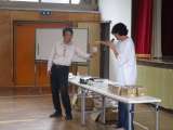 9月28日 3・4年理科 糸電話を使って音の伝わりを感じています。一方のコップに...