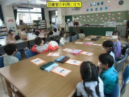 1年2組の皆さんが、図書館司書の辻原先生の、「図書室の利用の仕方」の授業を受けていました。本の借り方や返し方、今年は「どくしょノート」が配られていますので、その使い方について学習しました。本校でよく歌う「すえののこ」という歌の3番は「あきそらたかく すむころは ほんずきみんなあつまって ゆたかによんで かたるんだ」という歌詞です。歌詞の通り本好きな子になってほしいと思います。