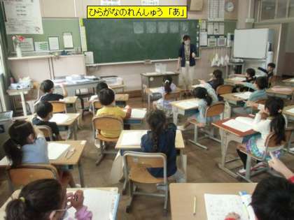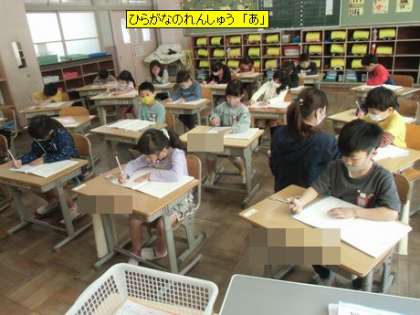国語 ひらがなのれんしゅう 「あ」 (1年1組)