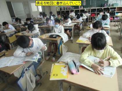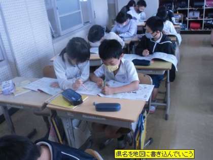 社会 県名を地図に書き込んでいこう(4年1組)